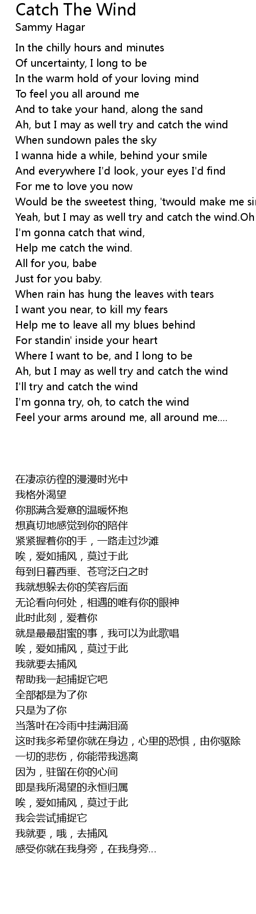 I'm gonna try, oh, to catch the wind |