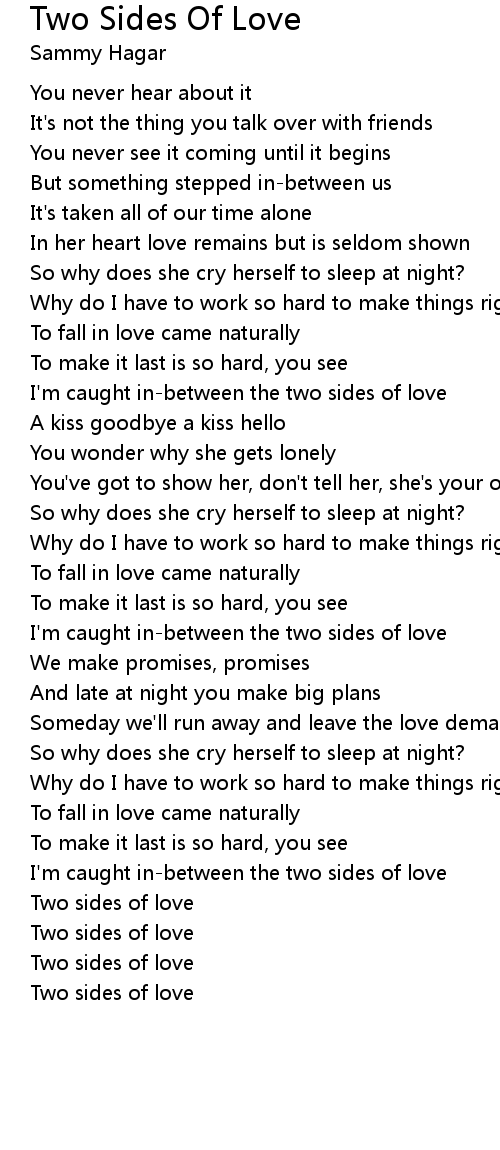 I'm caught in-between the two sides of love |