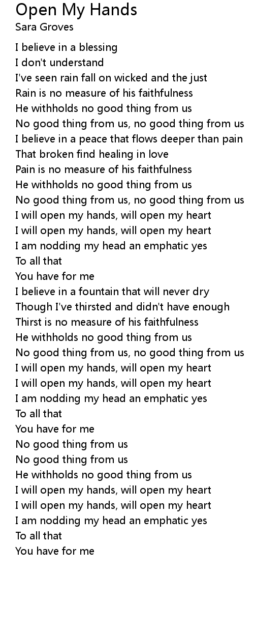 I will open my hands, will open my heart |