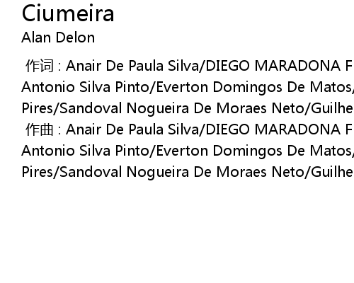 | [00:00.00-1] | zuò qǔ : Anair De Paula Silva DIEGO MARADONA FERREIRA DA SILVA Ray Antonio Silva Pinto Everton Domingos De Matos Paulo Henrique da Silva Pires Sandoval Nogueira De Moraes Neto Guilherme Da Costa E Silva Ferraz |