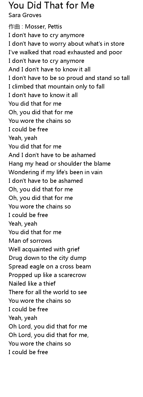| Oh Lord, you did that for me | |
