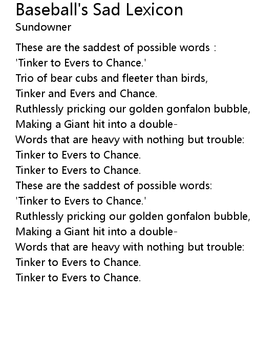 | Song | Baseball's Sad Lexicon |