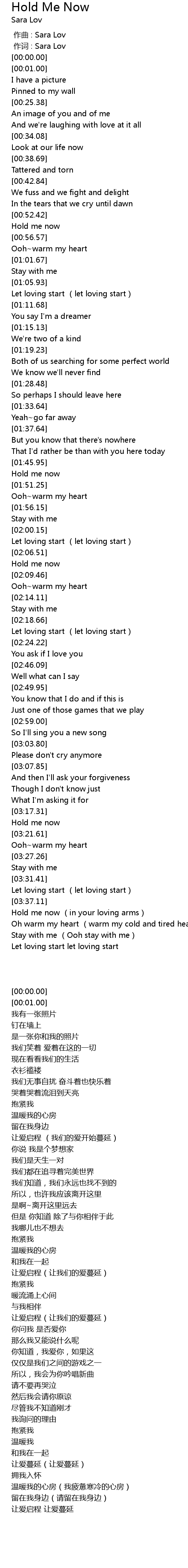 | [00:00.00] | zuo ci : Sara Lov |