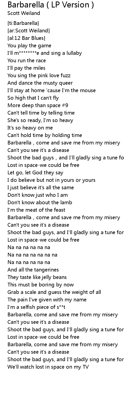 | [04:29.72] | Barbarella, come and save me from my misery |