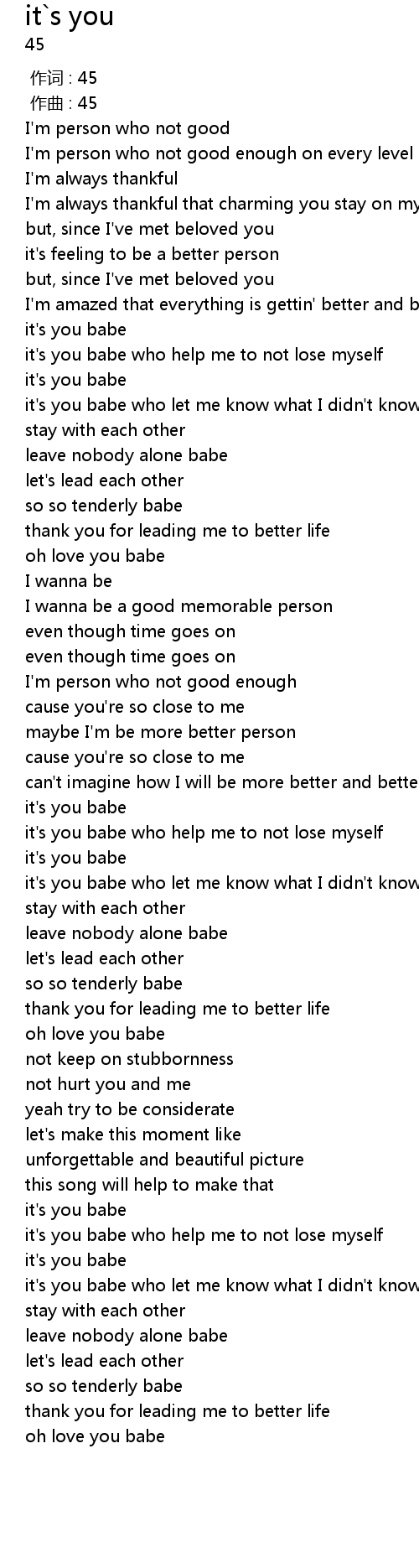 | [02:34.31] | it's you babe who help me to not lose myself |