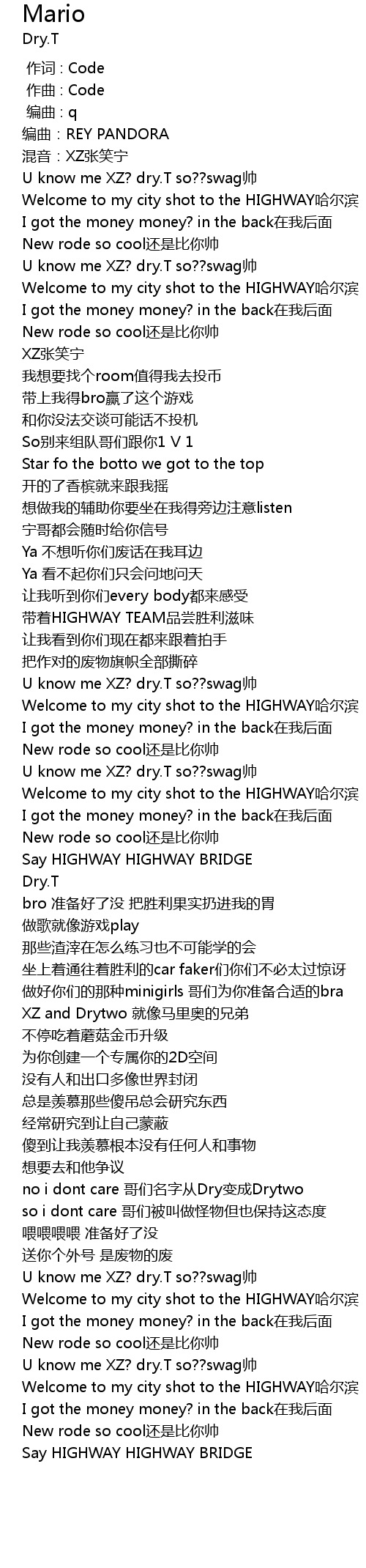 | [02:35.903] | U know me XZ? dry.T so??swag帅 |