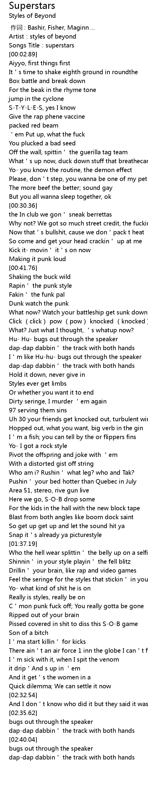 | [02:33.15] | And I don't know who did it but they said it was styles |