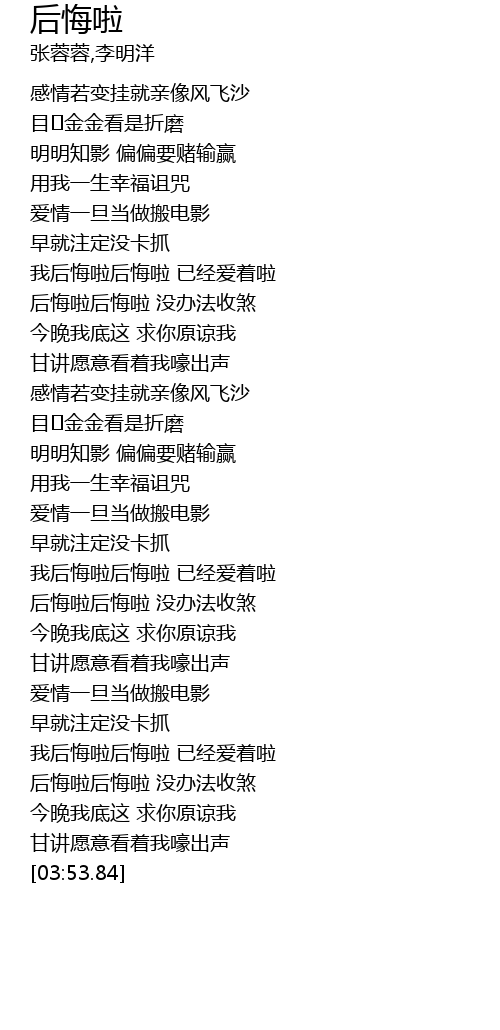 | [03:26.61] | 我后悔啦后悔啦 已经爱着啦 |