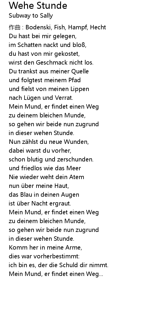 | Song | Wehe Stunde |