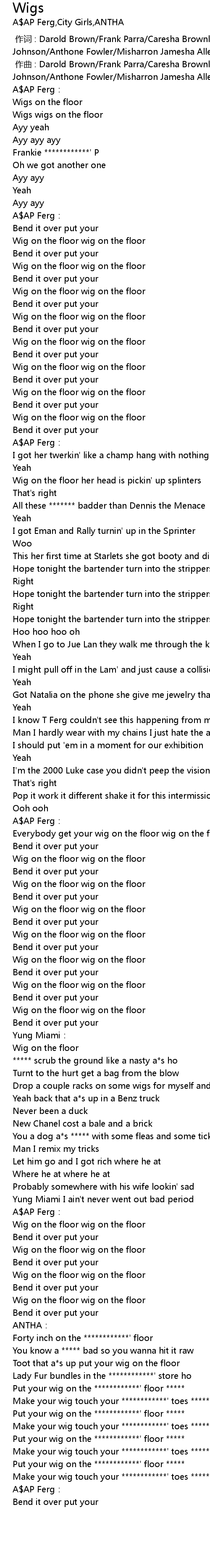 | [02:44.46] | Put your wig on the ************' floor ***** |