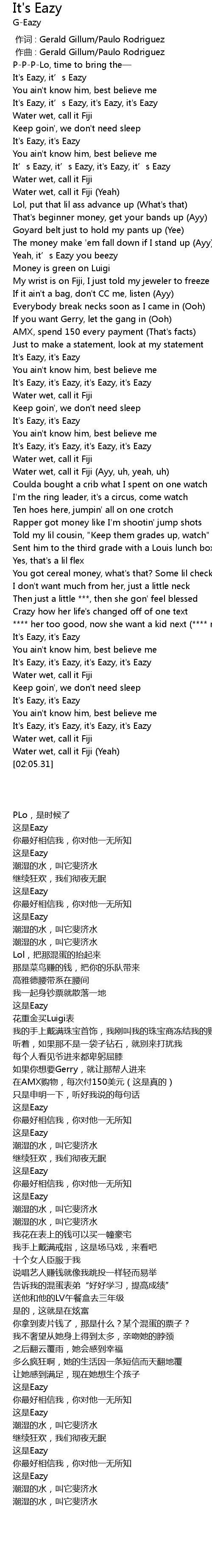 | [01:57.69] | It's Eazy, it's Eazy, it's Eazy, it's Eazy |