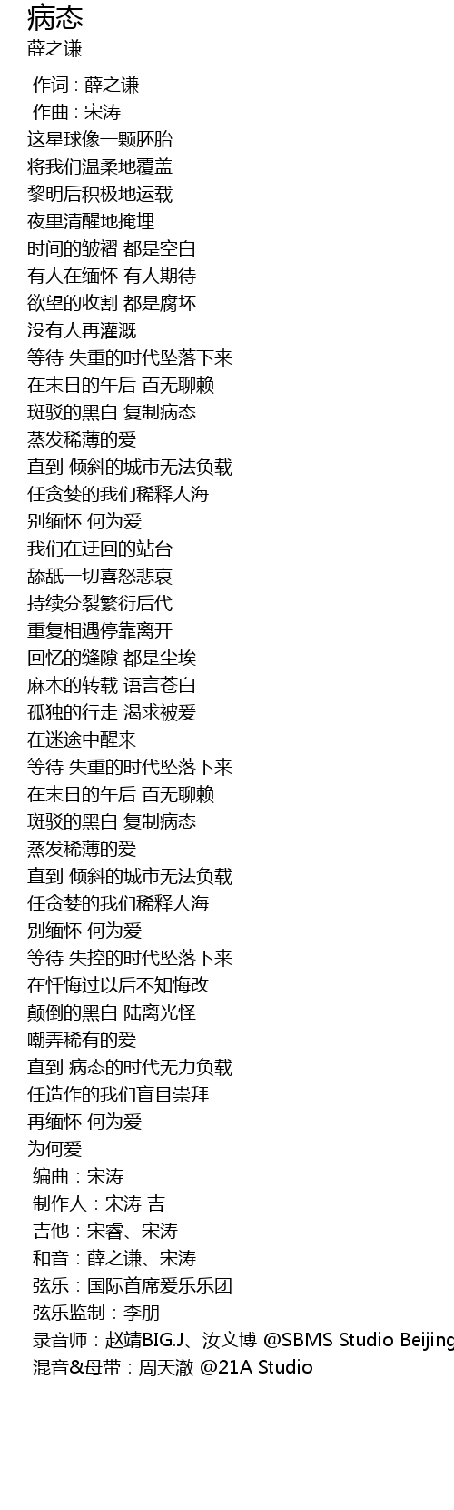 | [04:25.055] | 和音:薛之谦、宋涛 |
