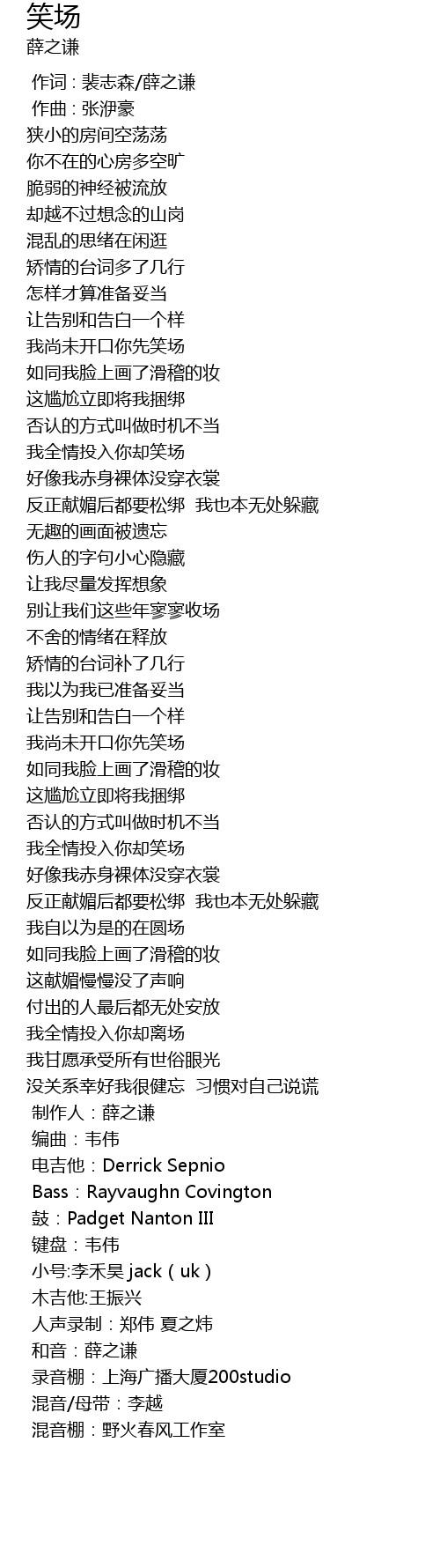 | [00:00.000] | 作词 : 裴志森/薛之谦 |