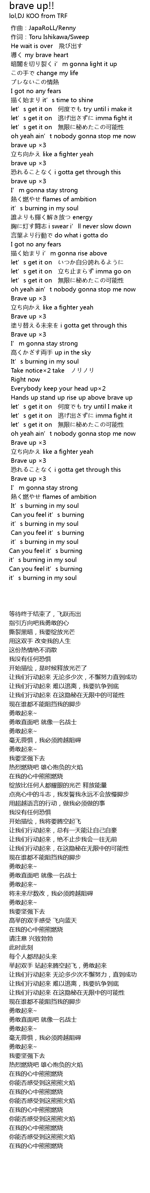 | [00:58.409] | 立ち向かえ like a fighter yeah |
