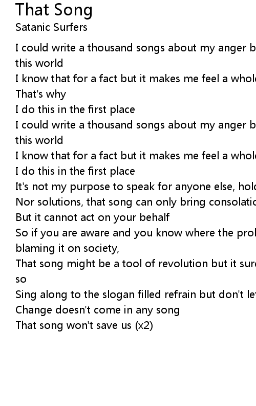 I could write a thousand songs about my anger but it wouldn't change a thing in this world |