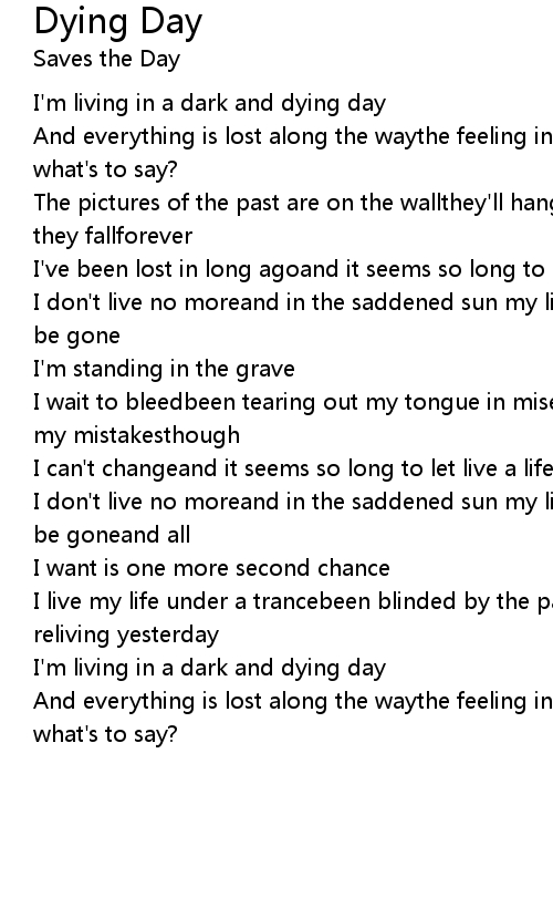 I don't live no moreand in the saddened sun my life leaves a shadow that'll soon be gone |