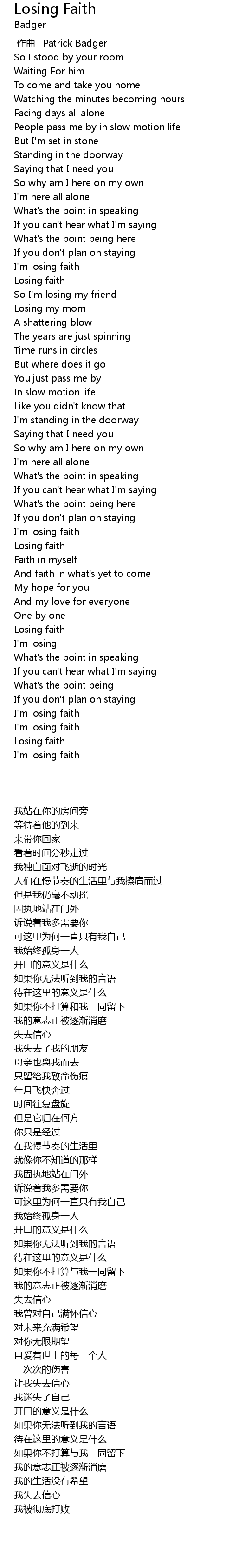 | [02:59.70] | I'm losing faith |