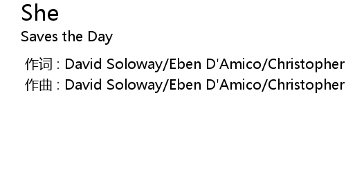 | [00:00.000] | 作曲 : David Soloway/Eben D'Amico/Christopher Conley/Pete Parada |