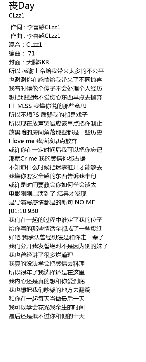 | [00:01.000] | zuo qu : li xi gan CLzz1 |