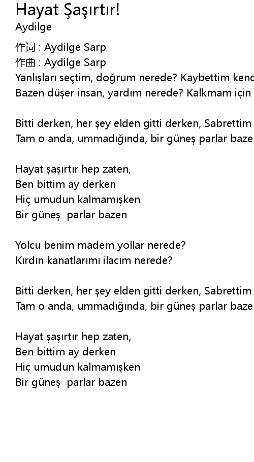 | Yanl lar se tim, do rum nerede? Kaybettim kendimi, dengem nerede? | |