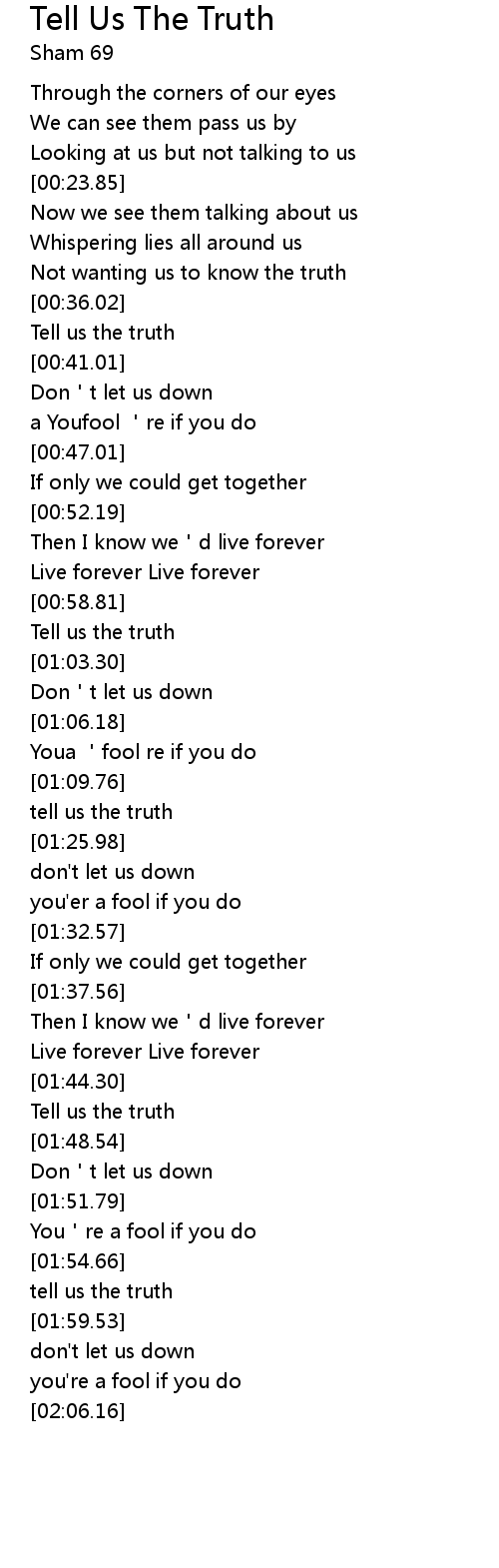 | [01:46.55] | Tell us the truth |