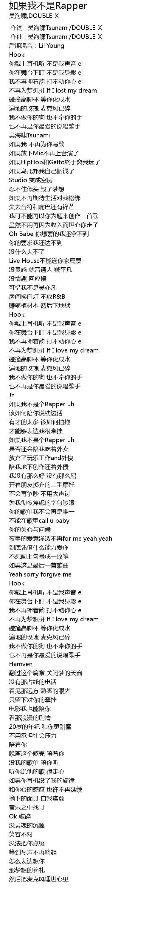 | [00:00.00] | 作词 : 吴海啸Tsunami/DOUBLE-X |