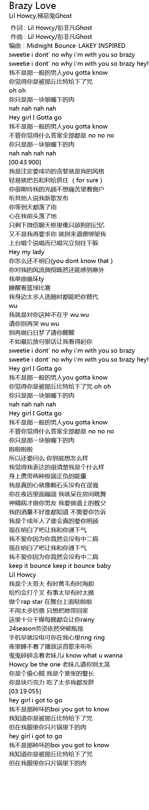 | [00:00.000] | zuo ci : Lil Howcy peng fei fan Ghost |