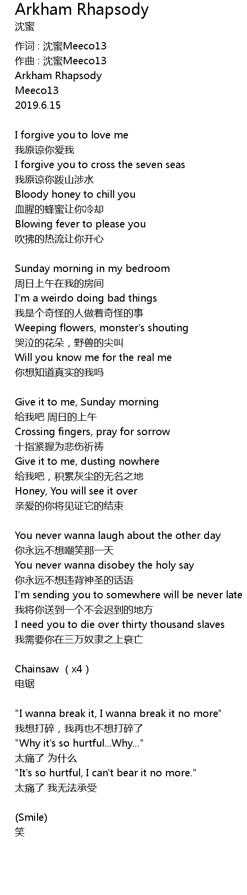 | 作词 : 沈蜜Meeco13 | |