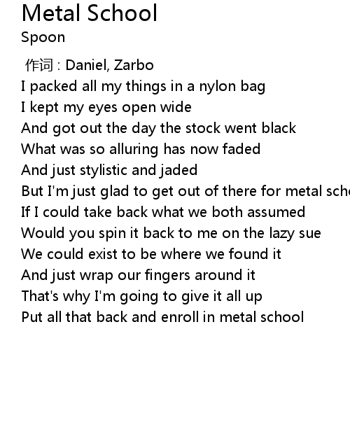 | [00:30.50] | But I'm just glad to get out of there for metal school |