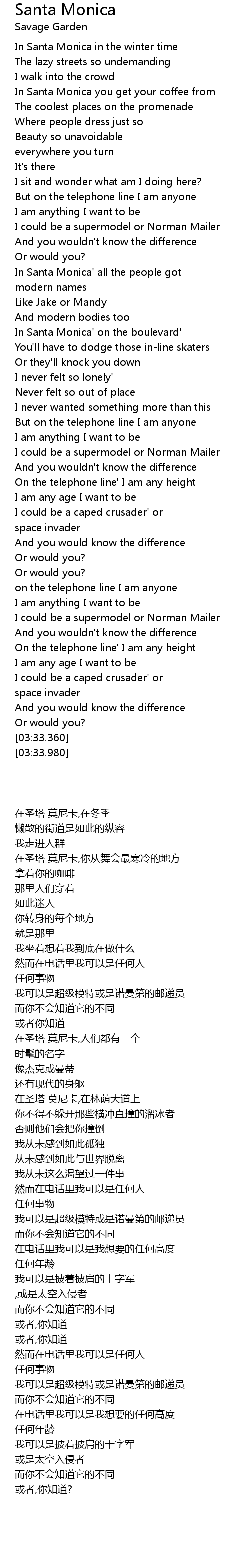 | [01:25.910] | In Santa Monica' on the boulevard' |