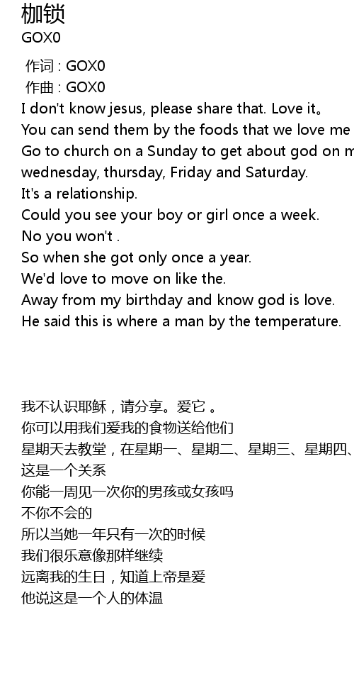 | [00:00.000] | 作词 : GOX0 |