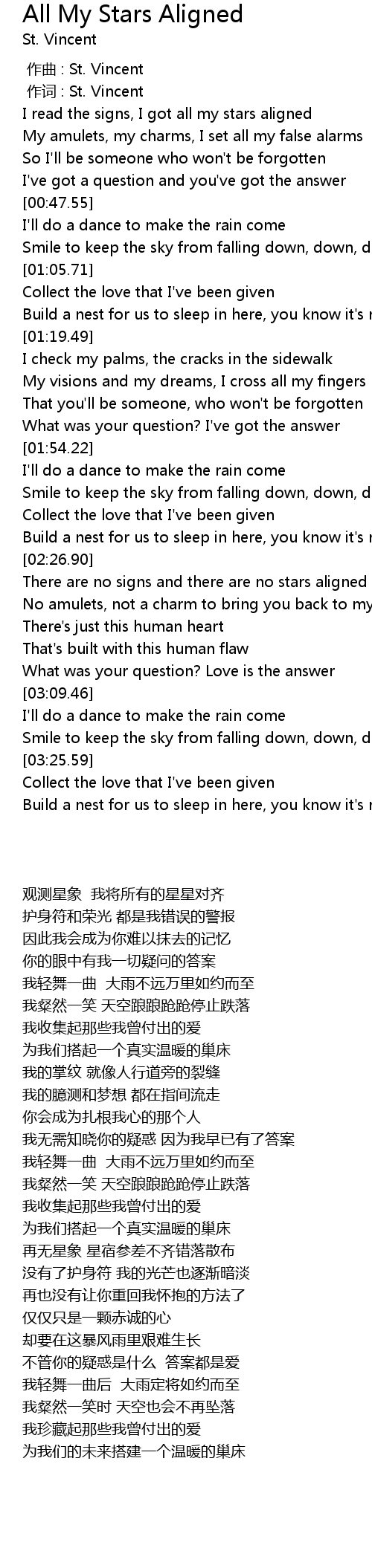 | [00:18.52] | I read the signs, I got all my stars aligned |