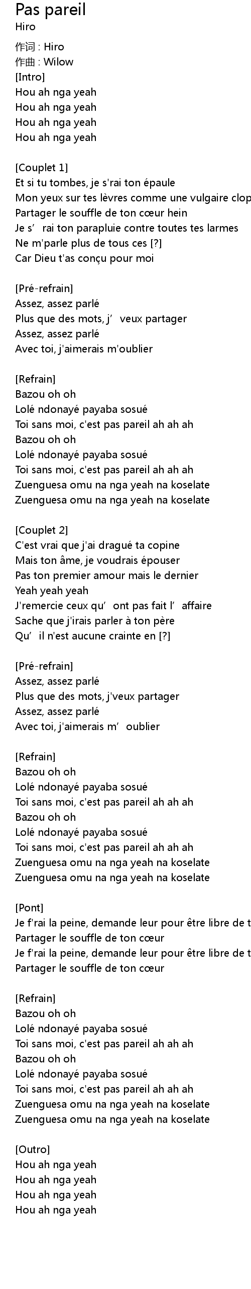 | Toi sans moi, c' est pas pareil ah ah ah | |
