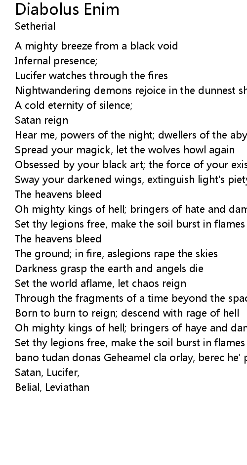 Oh mighty kings of hell; bringers of haye and damnation |