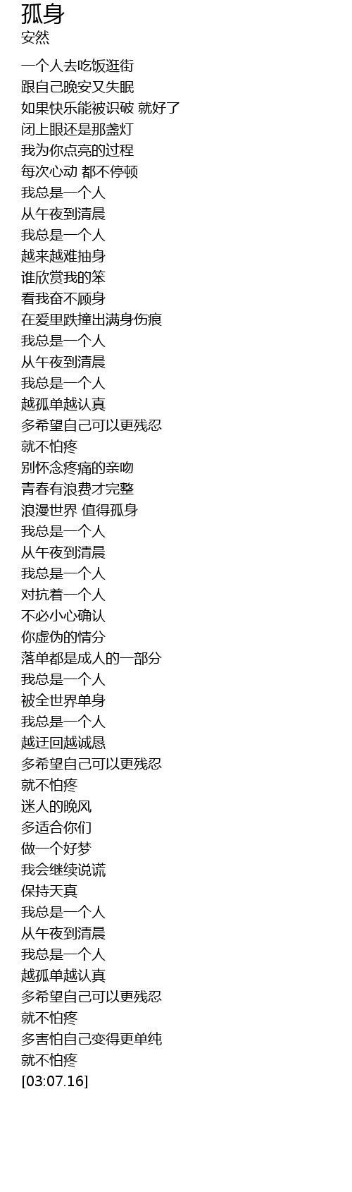 | [02:07.53] | wǒ zǒng shì yí ge rén |