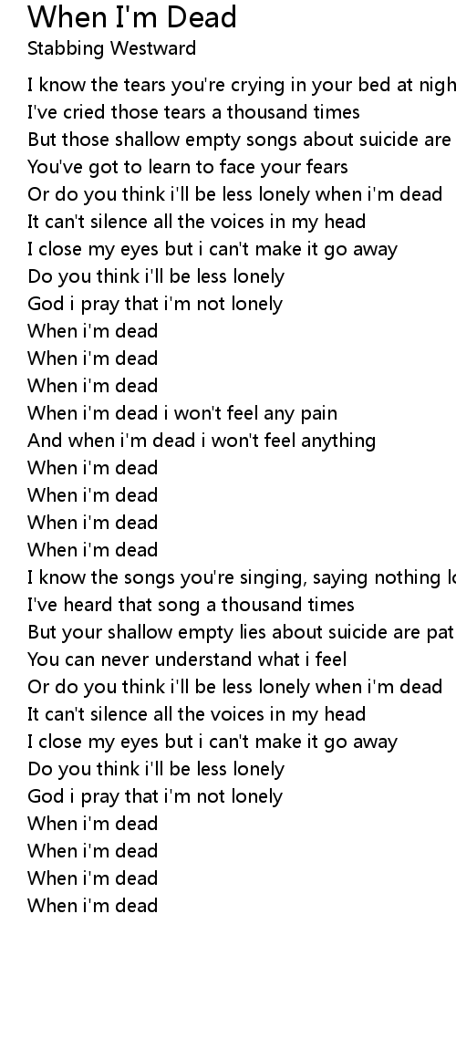 Or do you think i'll be less lonely when i'm dead |