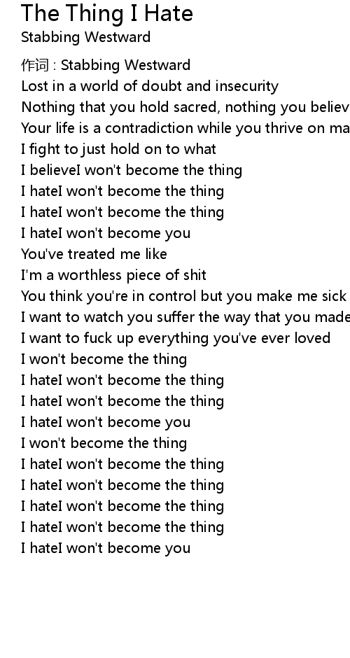 | I hateI won' t become the thing | |
