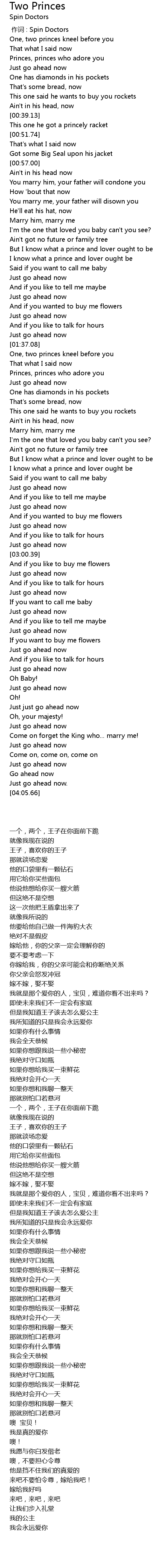 | [03:52.01] | Come on forget the King who... marry me! |