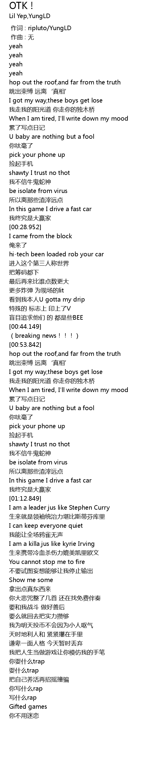 | [01:38.810] | ni xie shen me rap |