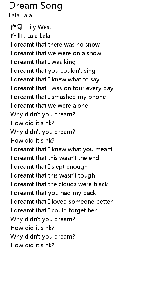 | [00:11.528] | I dreamt that you couldn' t sing |