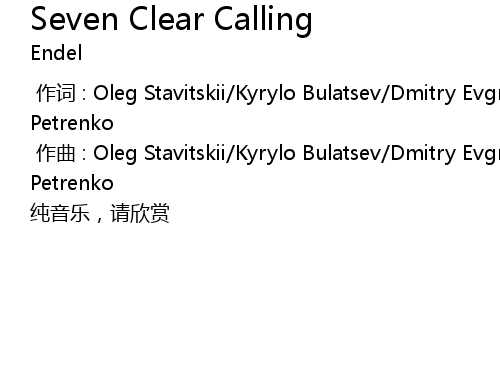 | [00:01.00] | zuo qu : Oleg Stavitskii Kyrylo Bulatsev Dmitry Evgrafov Philipp Petrenko |