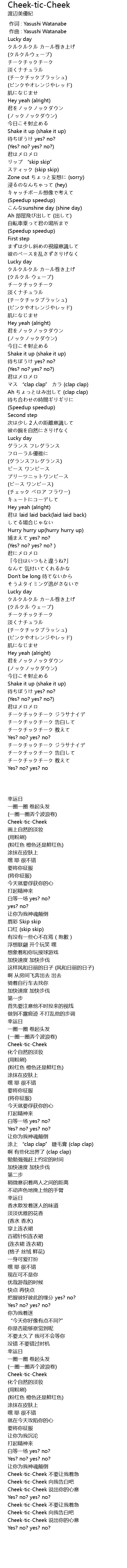 | [04:18.78] | チークチックチーク 告白して |