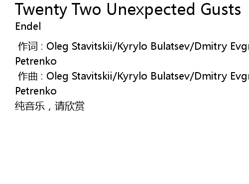 | [00:01.00] | zuo qu : Oleg Stavitskii Kyrylo Bulatsev Dmitry Evgrafov Philipp Petrenko |