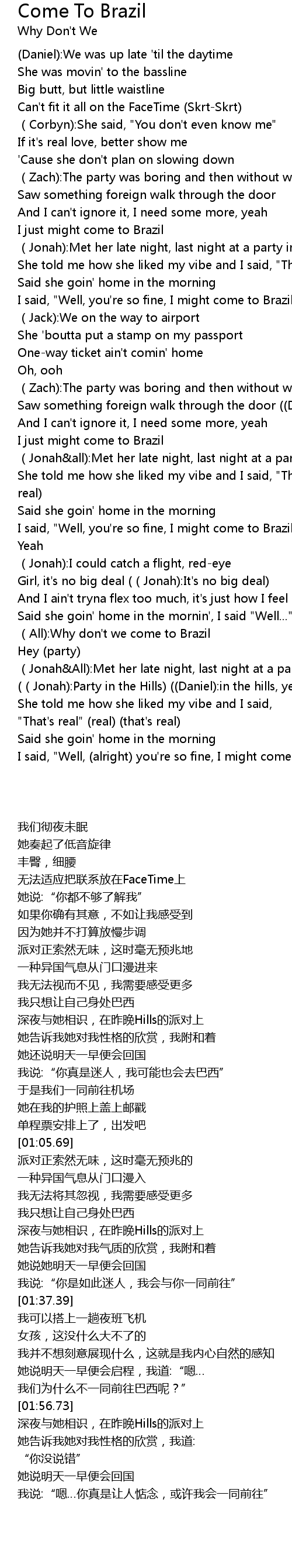 | [01:53.04] | All: Why don' t we come to Brazil |