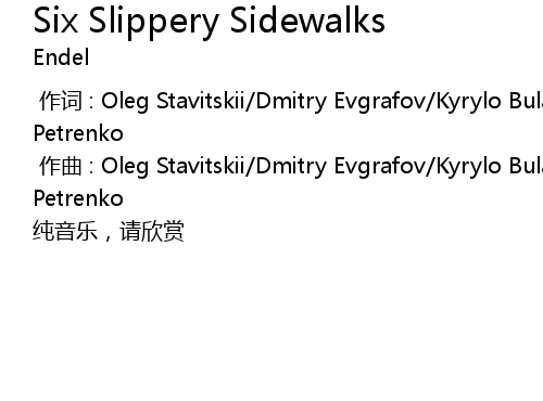 | [00:01.00] | zuo qu : Oleg Stavitskii Dmitry Evgrafov Kyrylo Bulatsev Philipp Petrenko |