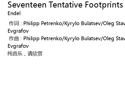 | [00:01.00] | zuo qu : Philipp Petrenko Kyrylo Bulatsev Oleg Stavitskii Dmitry Evgrafov |