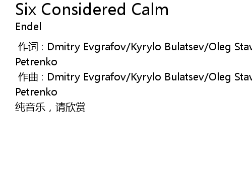 | Song | Six Considered Calm |
