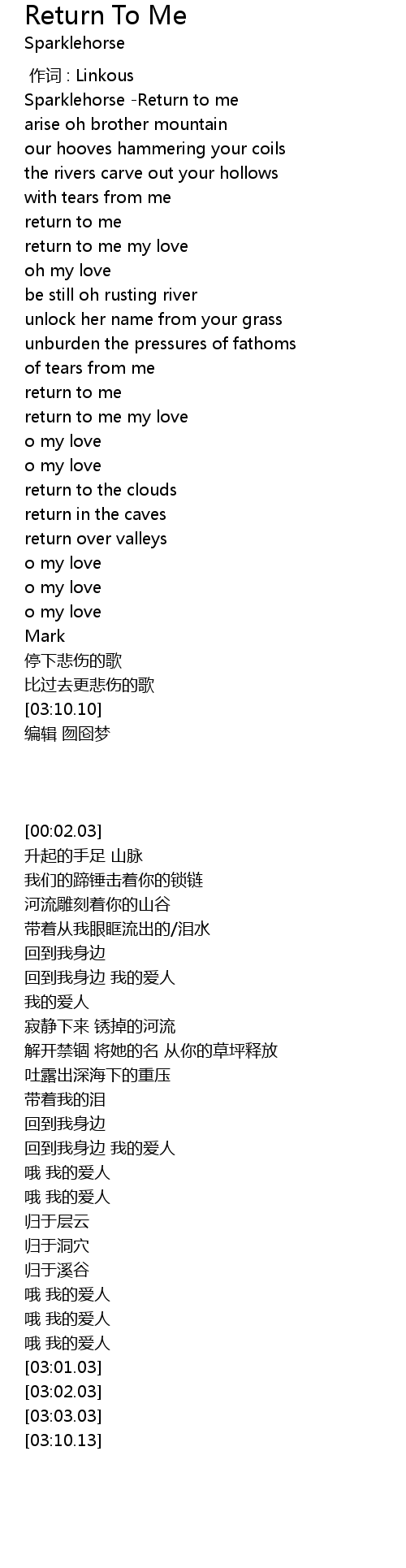 | [00:40.03] | return to me |