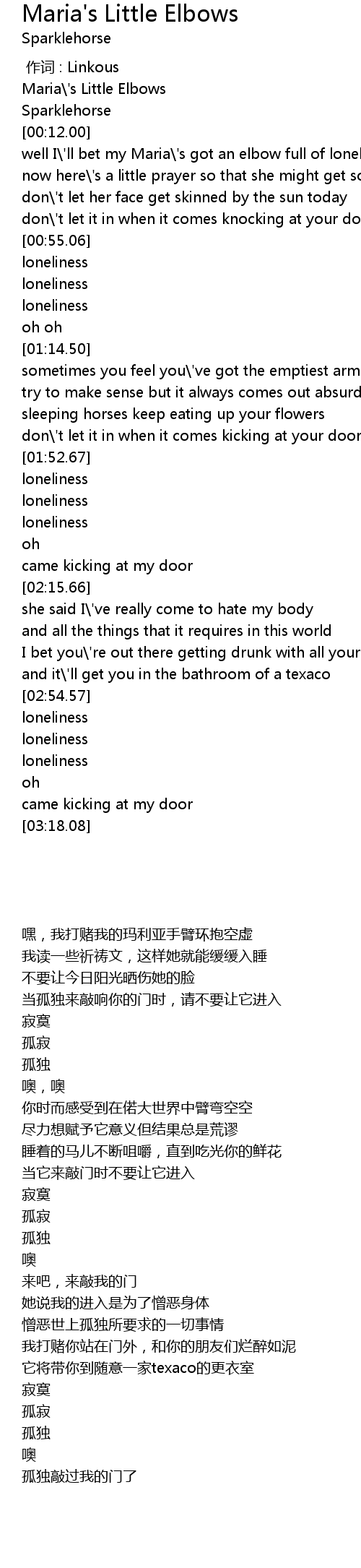 | [00:00.00] | Maria' s Little Elbows |
