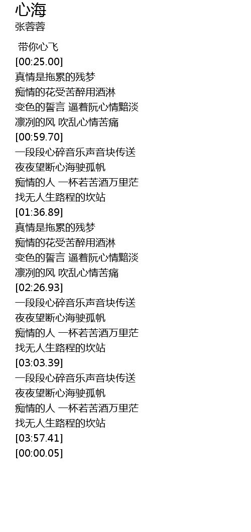 | [00:18.00] | 带你心飞 |